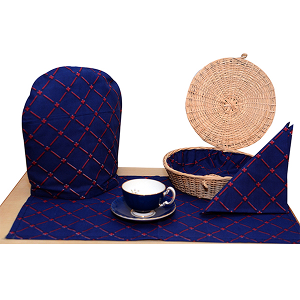 1 cane bread basket 1 T-cozy 12 napkins and 9 mats set