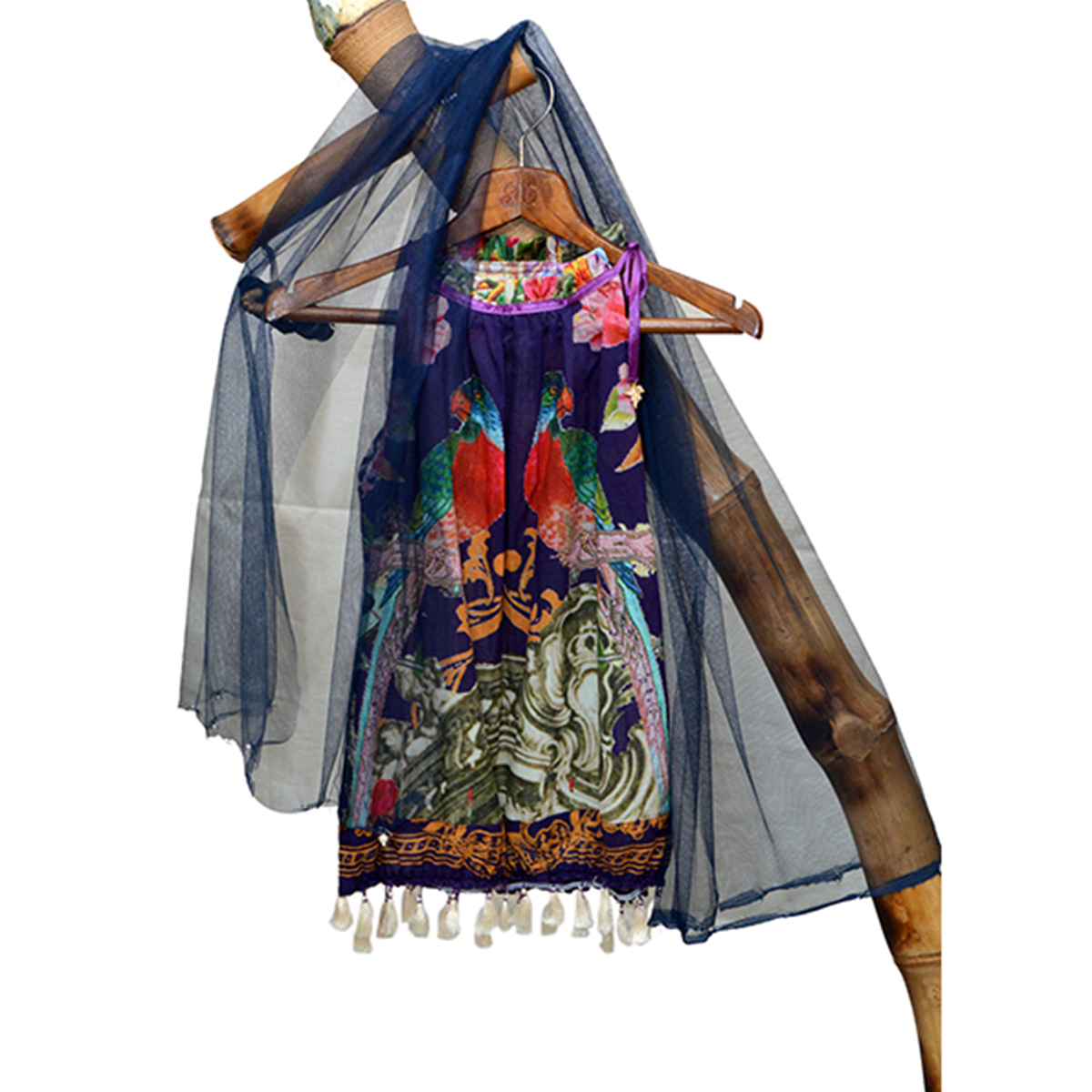 Kids and girls halter style blouse with net and beaded scarf